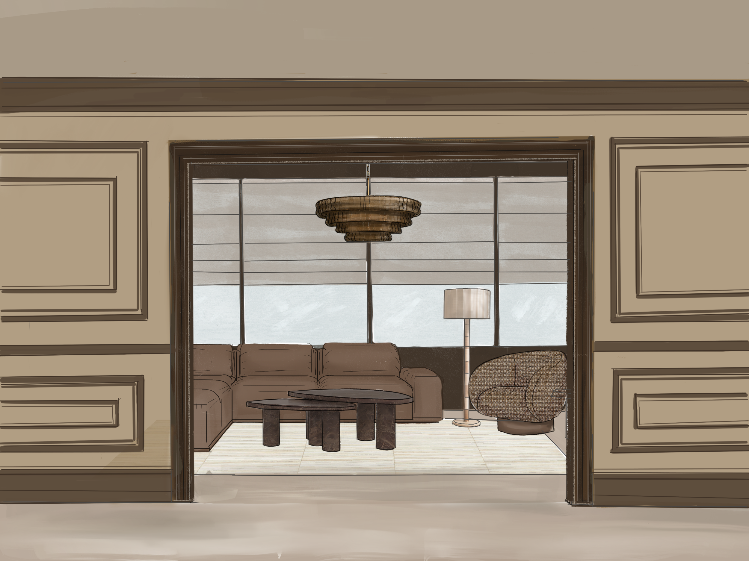 The apartment is sophisticated, earthy, and layered, combining natural materials such as wood, stone and soft textiles in rich, subtle natural tones and shades to create a calm, cozy and inviting atmosphere. The space is sophisticated in its attention to detail, with tailored finishings and curated pieces. It feels earthy through its connection to nature through the use of a brown, green, yellow and orange color palette, which are colors frequently seen in nature. Finally, the design is layered, integrating their collected objects and books in with newer, more modern pieces, and creating a space which feels built over time and which tells the story of their lives together. The integration of these concepts results in a home that feels collected and intentional, embedded with their personal stories, artistry, and a sense of quiet elegance.